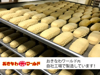 沖繩世界內名產專賣店的點心製造工廠正面是玻璃,來園時也可以參觀製造風景哦~