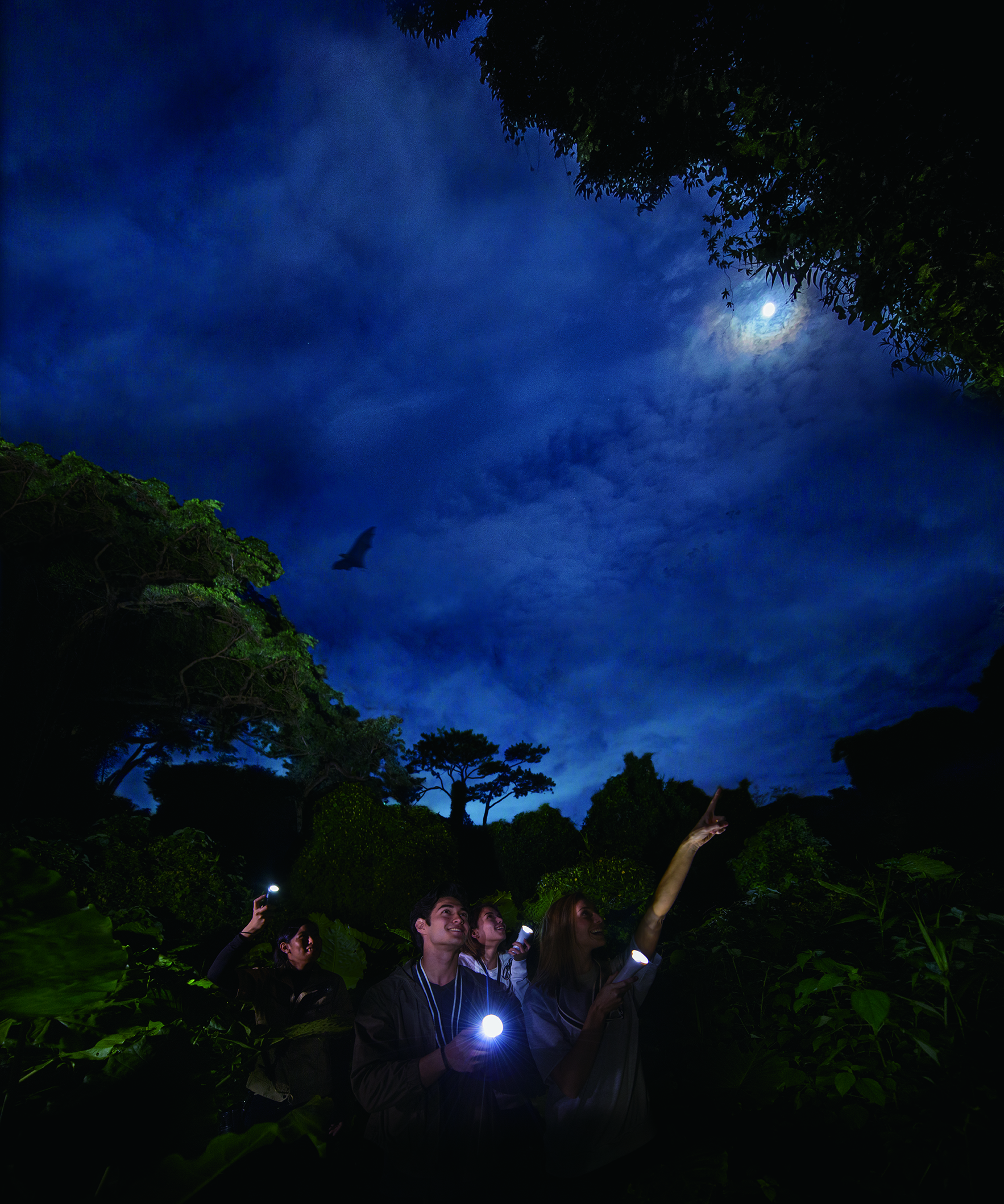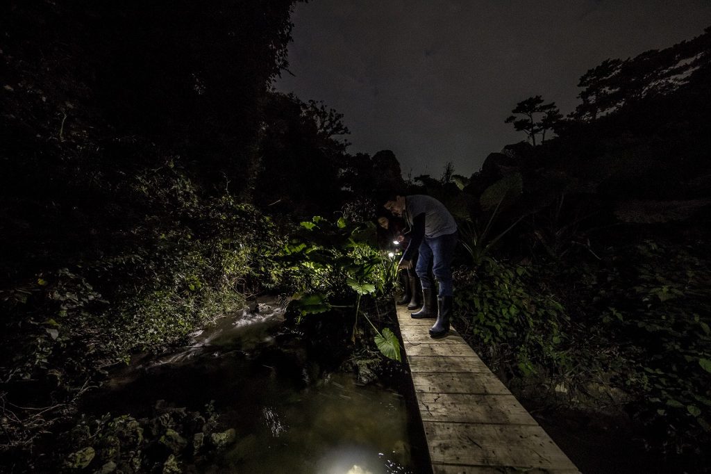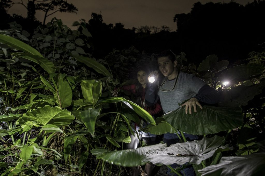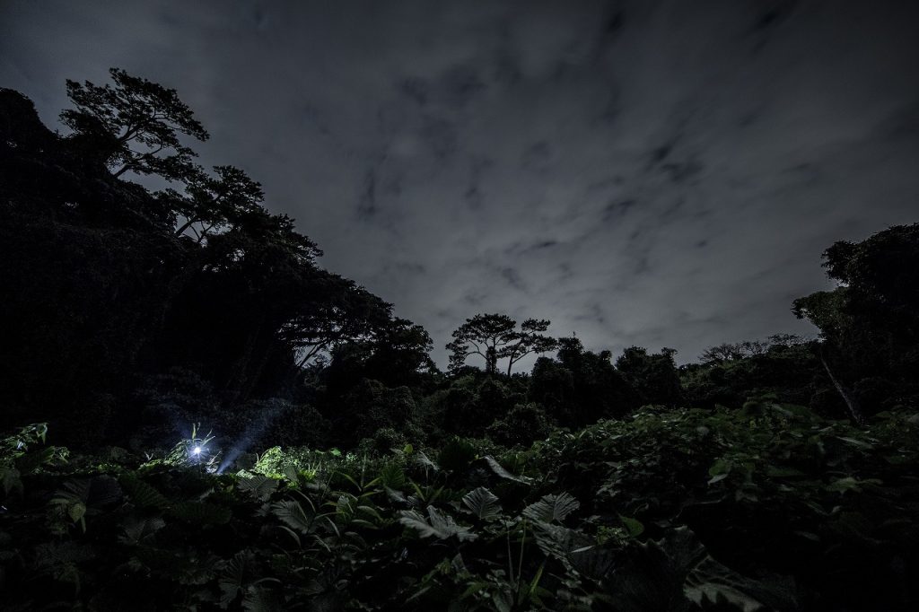 與白天完全不同的夜晚的叢林。在漆黑的森林中,值得信賴的是自己的感覺和照亮腳下的燈光微微的光芒。