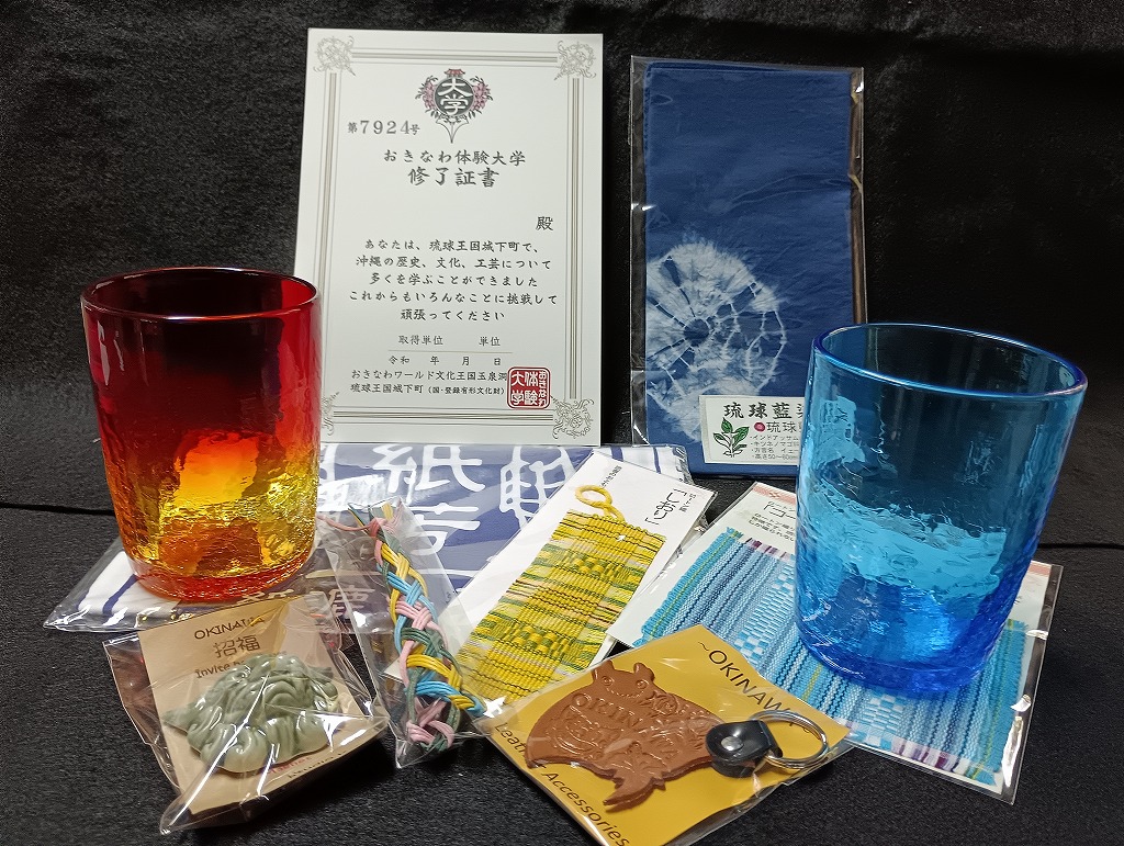 《結業證》和康卡拉三線、琉球玻璃和原創商品