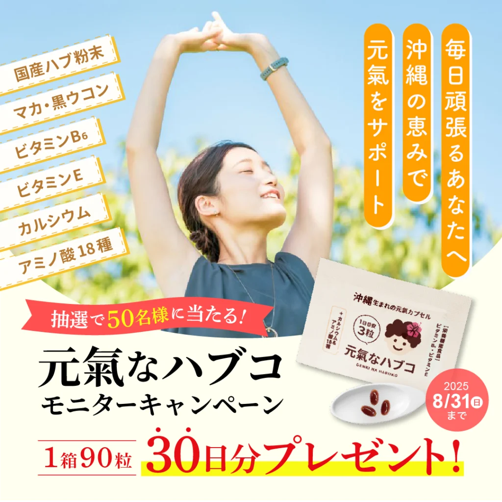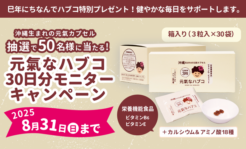 沖繩出生的元氣膠囊“元氣的HABU(龜殼花蛇)子”,現在正在實施【30天的監視器活動】!