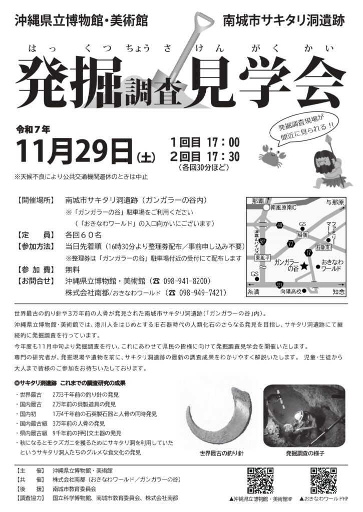 關於舉辦薩基塔利洞遺址發掘調查現場參觀會 | 通知 | 沖繩縣立博物館・美術館