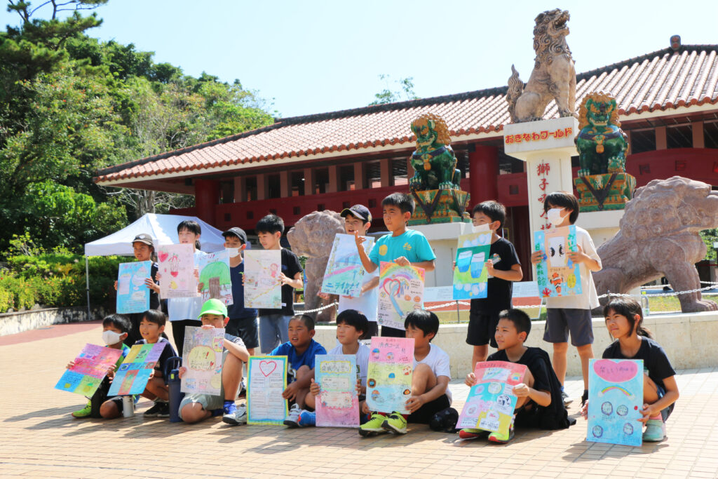 在展示之前,10月8日學生們直接把海報送到了沖繩世界。